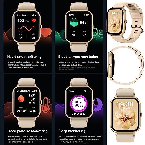 Avis sur Montre Connectée Femme, 1.83″ Smartwatch avec Appel Bluetooth 5.1/Numérotation, 123 Modes Sportifs, Cardiofrequencemètre, Podometre Moniteur de Sommeil, 5ATM Fitness Tracker pour Android iOS (Or)