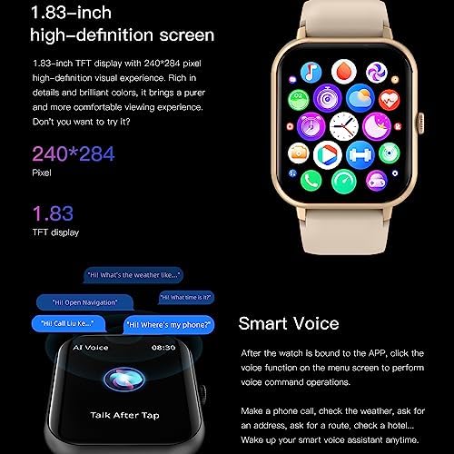 Fiche Technique Montre Connectée Femme, 1.83″ Smartwatch avec Appel Bluetooth 5.1/Numérotation, 123 Modes Sportifs, Cardiofrequencemètre, Podometre Moniteur de Sommeil, 5ATM Fitness Tracker pour Android iOS (Or) au Maroc