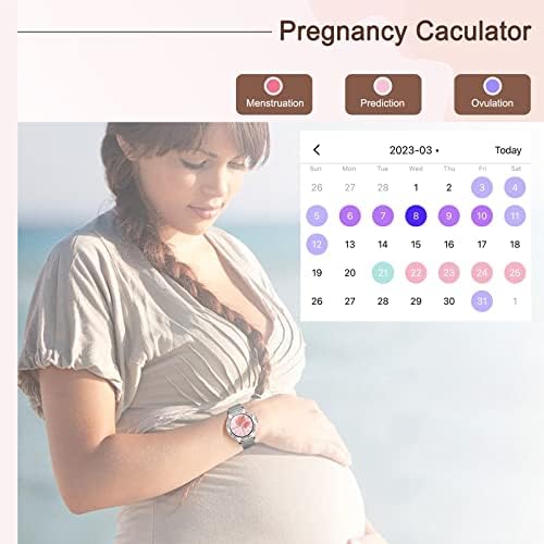 [surveillance de la santé] spécialement conçu pour les femmes, les fonctions féminines comprennent les périodes menstruelles, les périodes de sécurité, l’ovulation et la grossesse, visualisez rapidement le calendrier du cycle sur l’application dafit. La montre intelligente peut suivre la durée du sommeil, la fréquence cardiaque, la pression artérielle et l’oxygène. Les Données de santé sont fournies à titre indicatif uniquement, avec une précision non médicale standard.