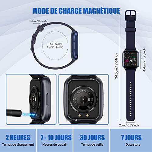 Fiche Technique Montre Connectée Homme Femme 1.69″ Smartwatch Sport Fitness Tracker d’Activité IP67 avec Fonction Fréquence Cardiaque/Sommeil/25 Modes Sportifs/Lecteur Musique, Montre Intelligente pour Android iOS au Maroc