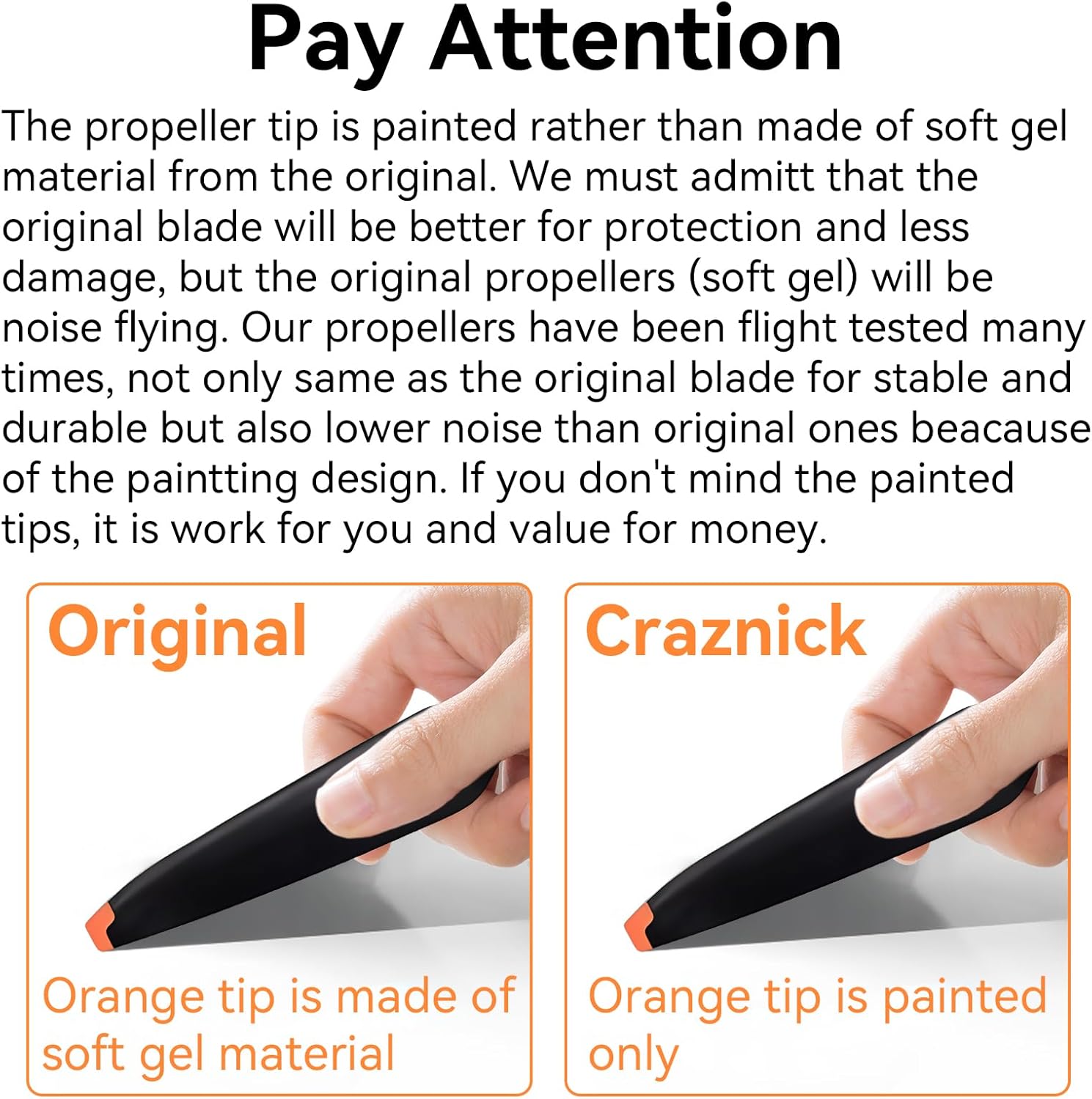 Upgraded Version This propeller set has lighter weight and low noise design, it will make your drone more stable and quieter.
