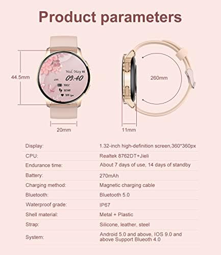 Fiche Technique SIEMORL Montre Connectée Femme avec Appel Bluetooth, 1.32” Smartwatch vec Moniteur de Fréquence Cardiaque/Sommeil Montre Smartwatch,Podometre Calories Etanche IP67 Chronometre pour Android iOS au Maroc