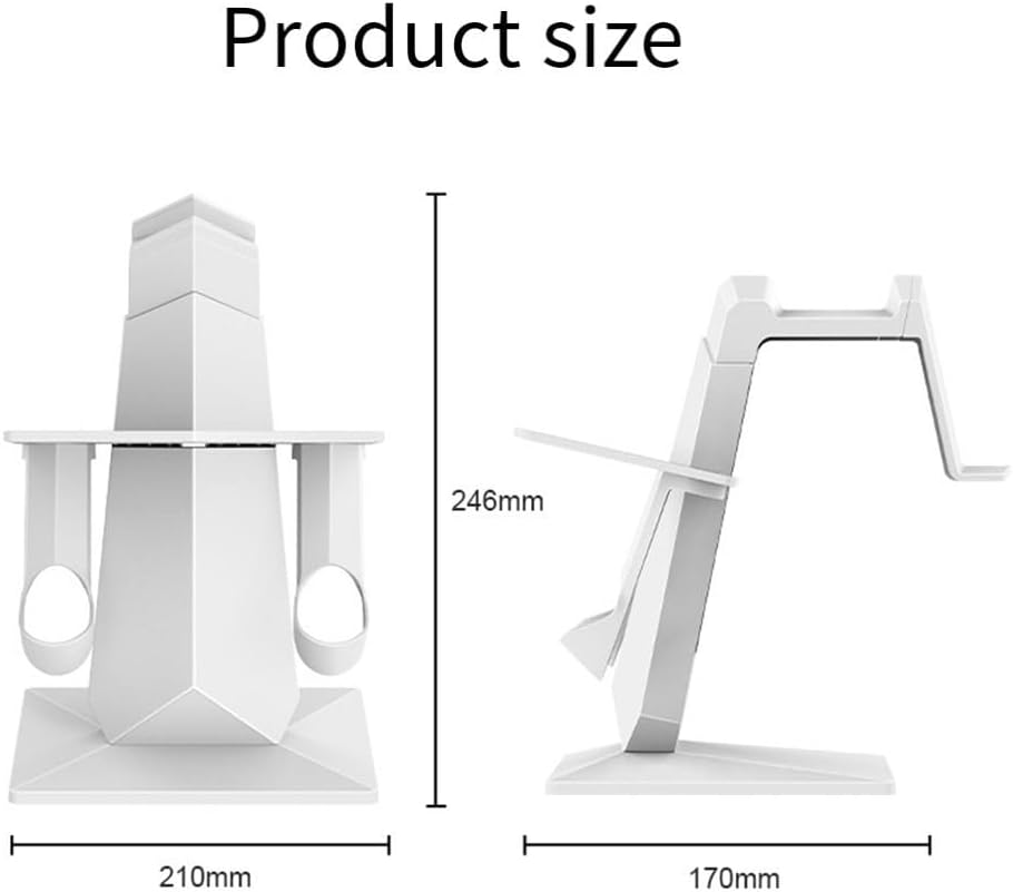 Compact Design This VR headset stand is designed to save valuable desk space, measuring 24 x 26 x 6 cm. It provides a neat and organized way to store and display your 3S VR headset and accessories.