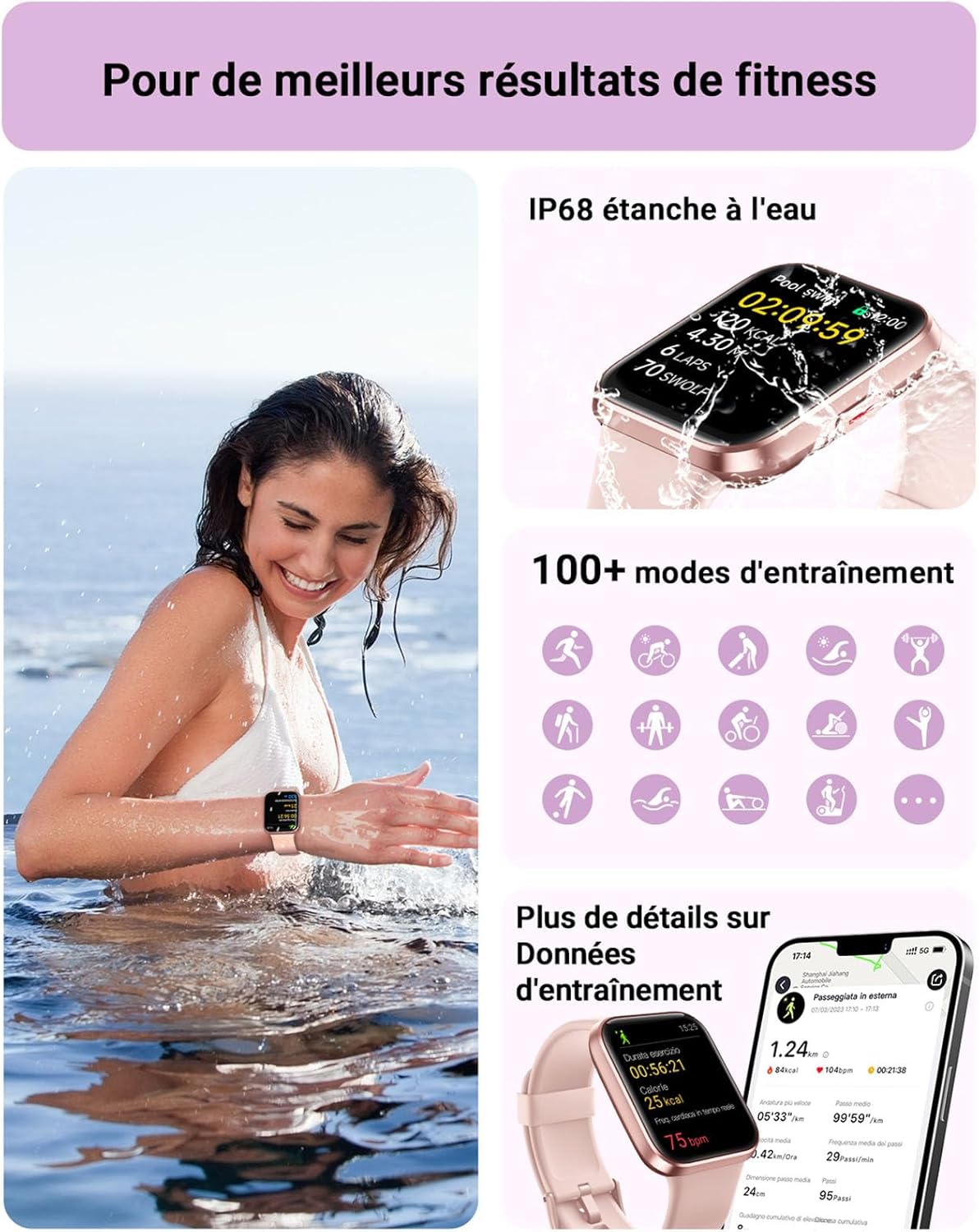 Voici le prix pour acheter Women’s Smartwatch 1.85 Inch Smartwatch for Samsung iPhone Android, Alexa Built-in 3ATM 100+ Sports Modes SpO2/Sleep/Heart Rate/Pedometer/Calories Pink au Maroc