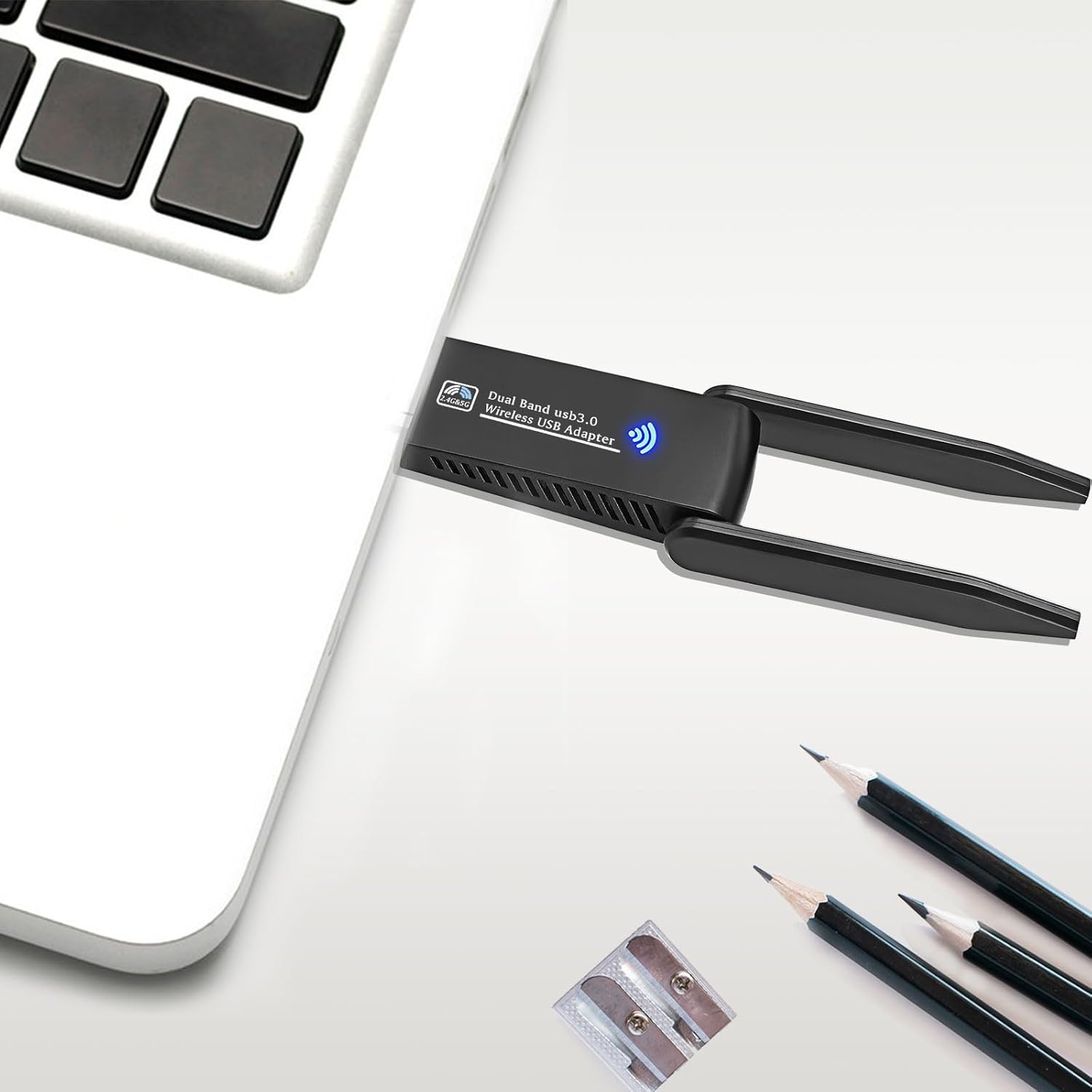 Avis sur AC1300 Mbps WiFi Key, Dual Antenna WiFi USB 3.0 Dual Band, 2.4G/5GHz, MU-MIMO WiFi Key, WiFi Card for PC Antenna High Gain 5dBi, Compatible with Windows 11/10/8.1/8/7/XP