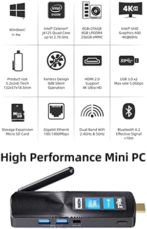 Avis sur MeLE PCG02 Mini PC Stick sans ventilateur, J4125 8 Go 256 Go Windows 11 Pro 4K HDMI Petit ordinateur portable, prend en charge Win10 Pro PXE Bios débloqué Gigabit Ethernet, fonctionne sur l’industrie des médias IoT Office