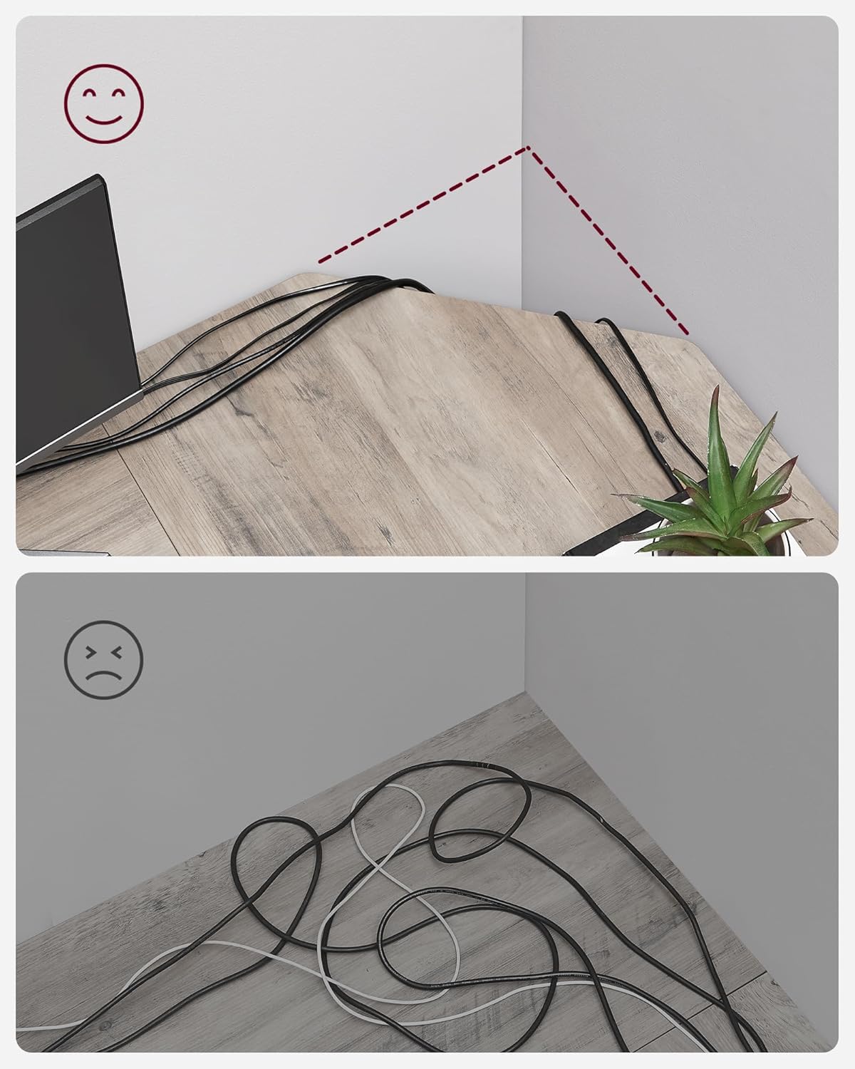 L-shaped tray, double work surface: one side of the corner desk is suitable for laptop, monitor and other devices, the other side is ideal for books or other office supplies