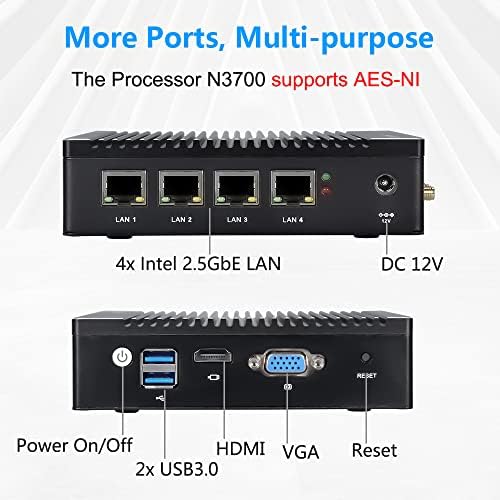Avis sur VNOPN Micro Firewall Appliance 4 Intel 2.5GbE NIC Ports Fanless Mini PC, Network Soft Router Mini Computer Intel N3700 Quad Core, Support AES-NI, 4GB DDR3, 64GB mSATA SSD
