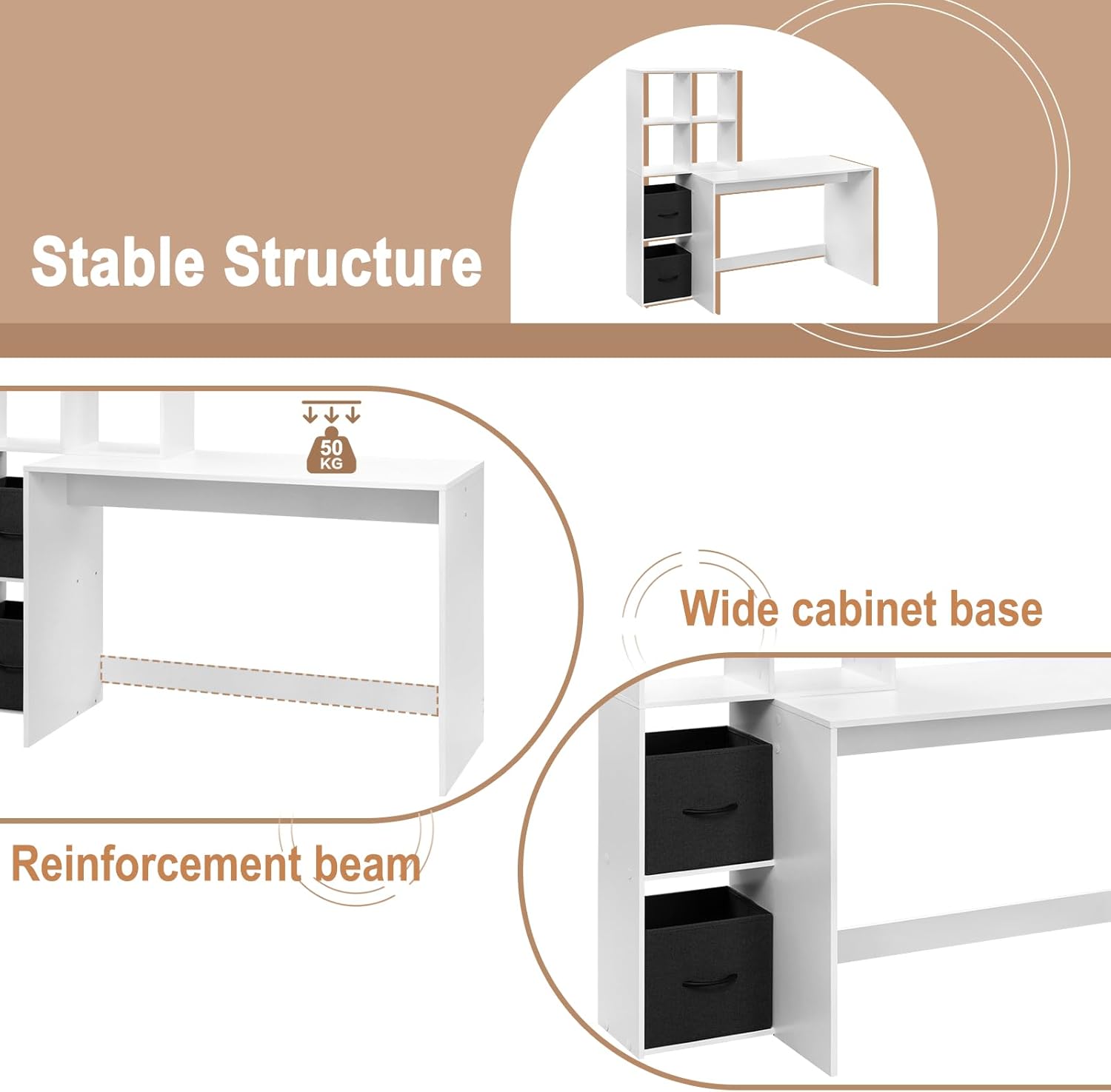 Fiche Technique WOLTU TS184ws Desk with Storage Cubics and Fabric Drawers, 140 x 50 cm, Table with Shelves, Computer, Computer Desks, Workdesk, White au Maroc
