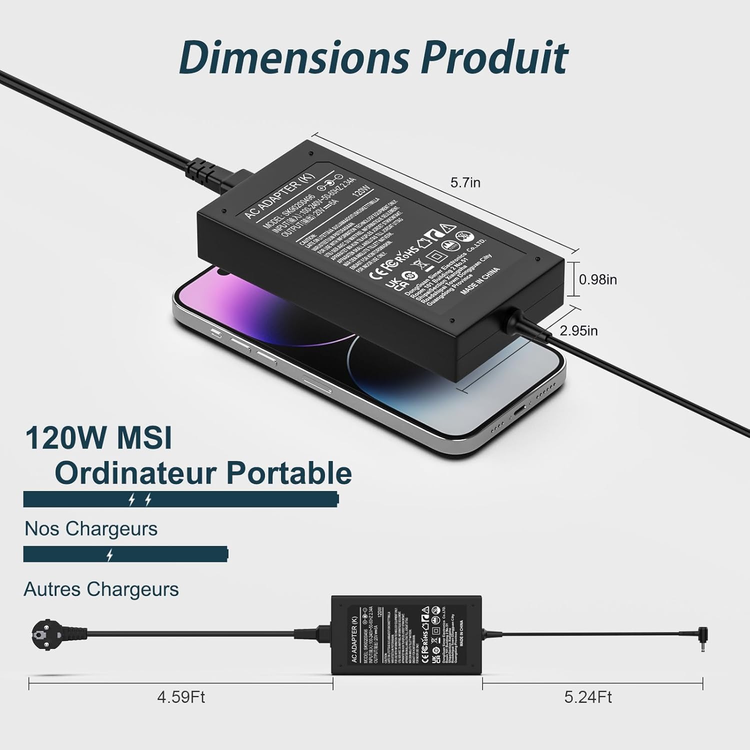 Fiche Technique 120W MSI Laptop Charger 20V for Msi GF63 Thin 10th 11th 12th GV15 Thin 11th Cyborg 14 13th Cyborg 15 12th 13th Cyborg 15 AI A1VEK MS-16R4 MS-16R5 MS-16R6 MS-16R6 MS-16 R7 MS- 16R8 Power Supply au Maroc