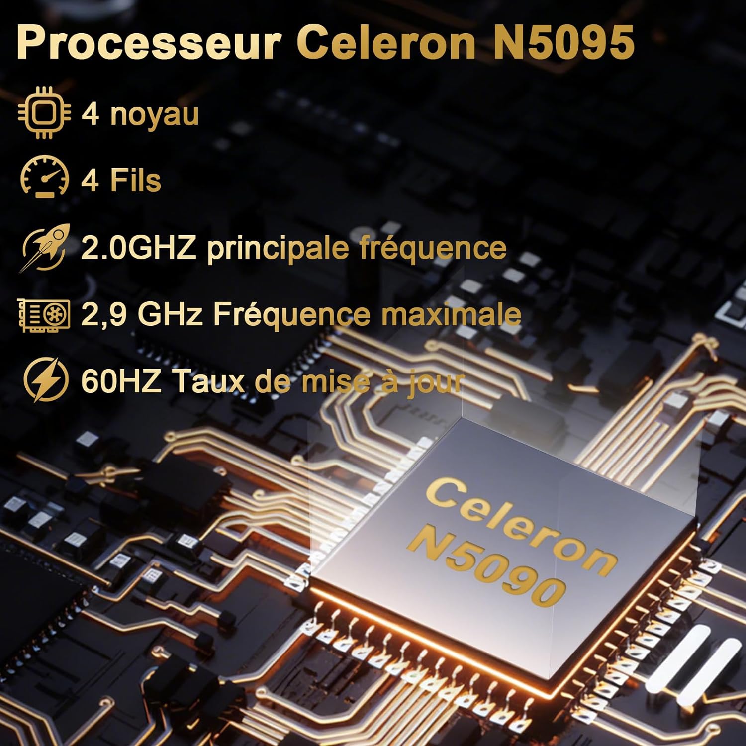 Avis sur Celeron N5095 Laptop 16 Inch 4 Cores (up to 2.9 GHz) 12+512GB SSD Support Extension 2TB (HDD-2TB) Laptop Win11 5G WIFI 1920×1200 Wireless Mouse & AZERTY Keyboard Cover – Black