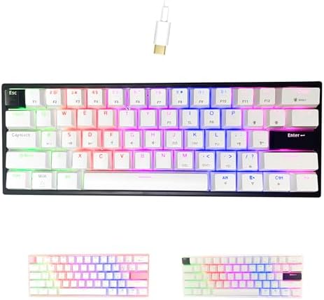 Voici le prix pour acheter Clavier de jeu mécanique portable 60 % rétroéclairé par LED, compact, 61 touches, mini clavier de bureau filaire avec interrupteur bleu, touches PBT pour ordinateur portable Windows, PC, Mac (blanc/noir)