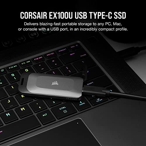 Voici le prix pour acheter Corsair EX100U Disque de stockage USB Type-C portable 1 To – Stockage ultra-rapide sur n’importe quel PC/Mac/console, connexion Gen2 x2, jusqu’à 20 Gbit/s, Plug and Play, câbles USB Type-C et USB Type-A inclus – Noir