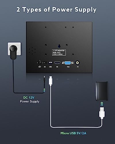 Moniteur alimenté par USB : le petit moniteur HDMI portable prend en charge 2 types d’alimentation : vous pouvez le charger soit avec un adaptateur CC (12 V/2 A), soit avec un câble d’alimentation USB (5 V/2 A), ce qui améliore considérablement la commodité de chargement lorsque vous sont à l’extérieur car vous pouvez le charger avec une banque d’alimentation 5 V/2 A.