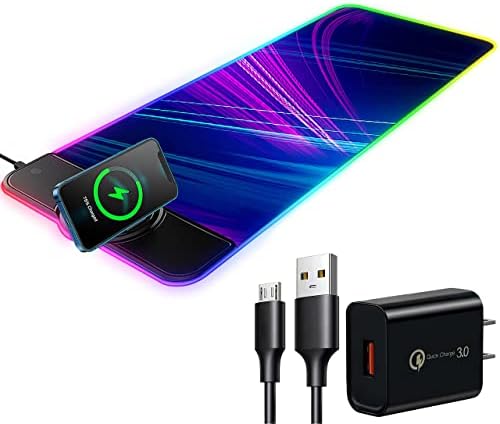 Le Prix Grand tapis de souris de jeu RVB avec chargement sans fil, chargement rapide sans fil 15 W, tissu en microfibre de qualité supérieure, base antidérapante, 10 modes d’éclairage, clavier pour jeux, PC, ordinateur portable 31,5″ × 11,81″