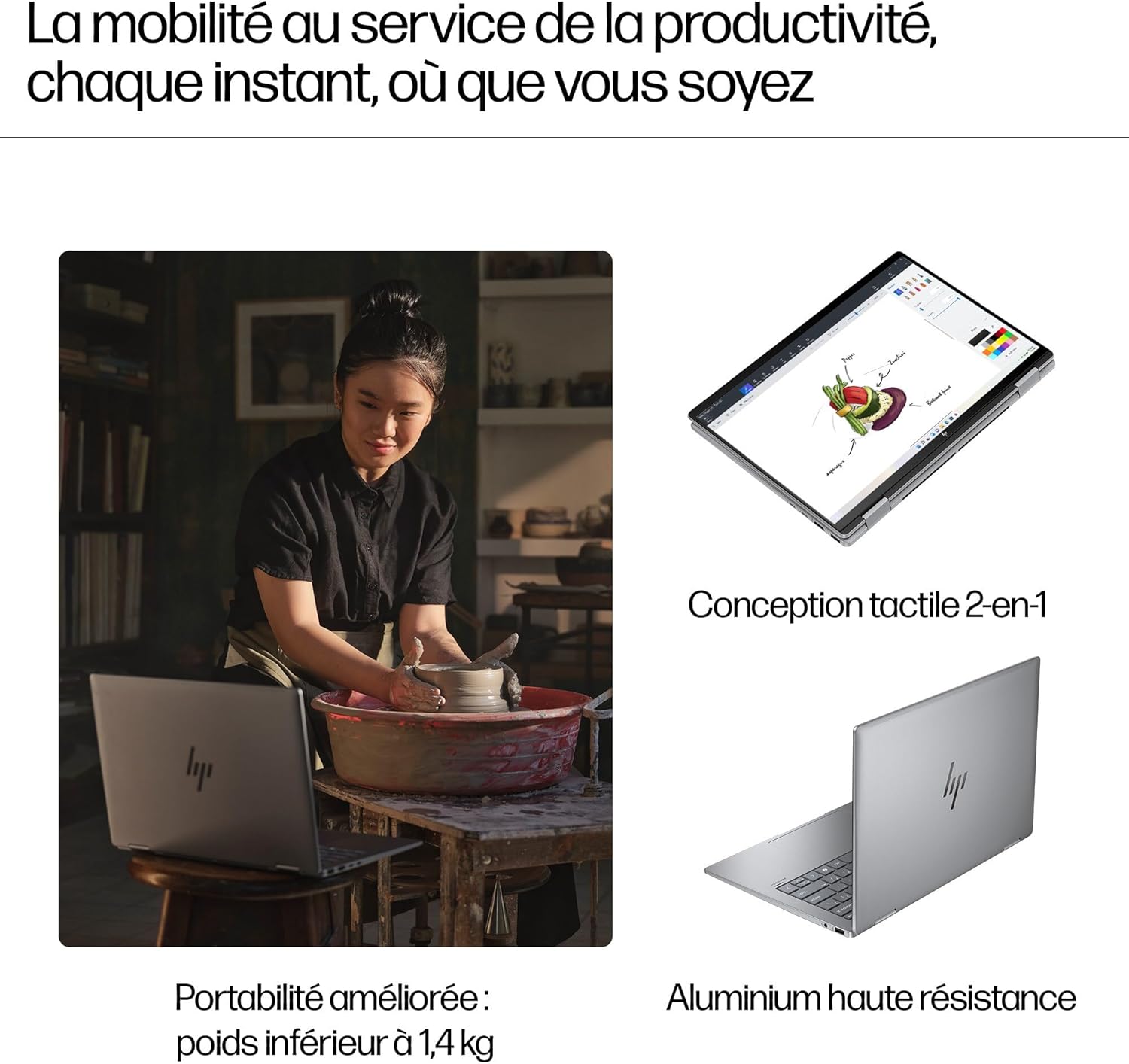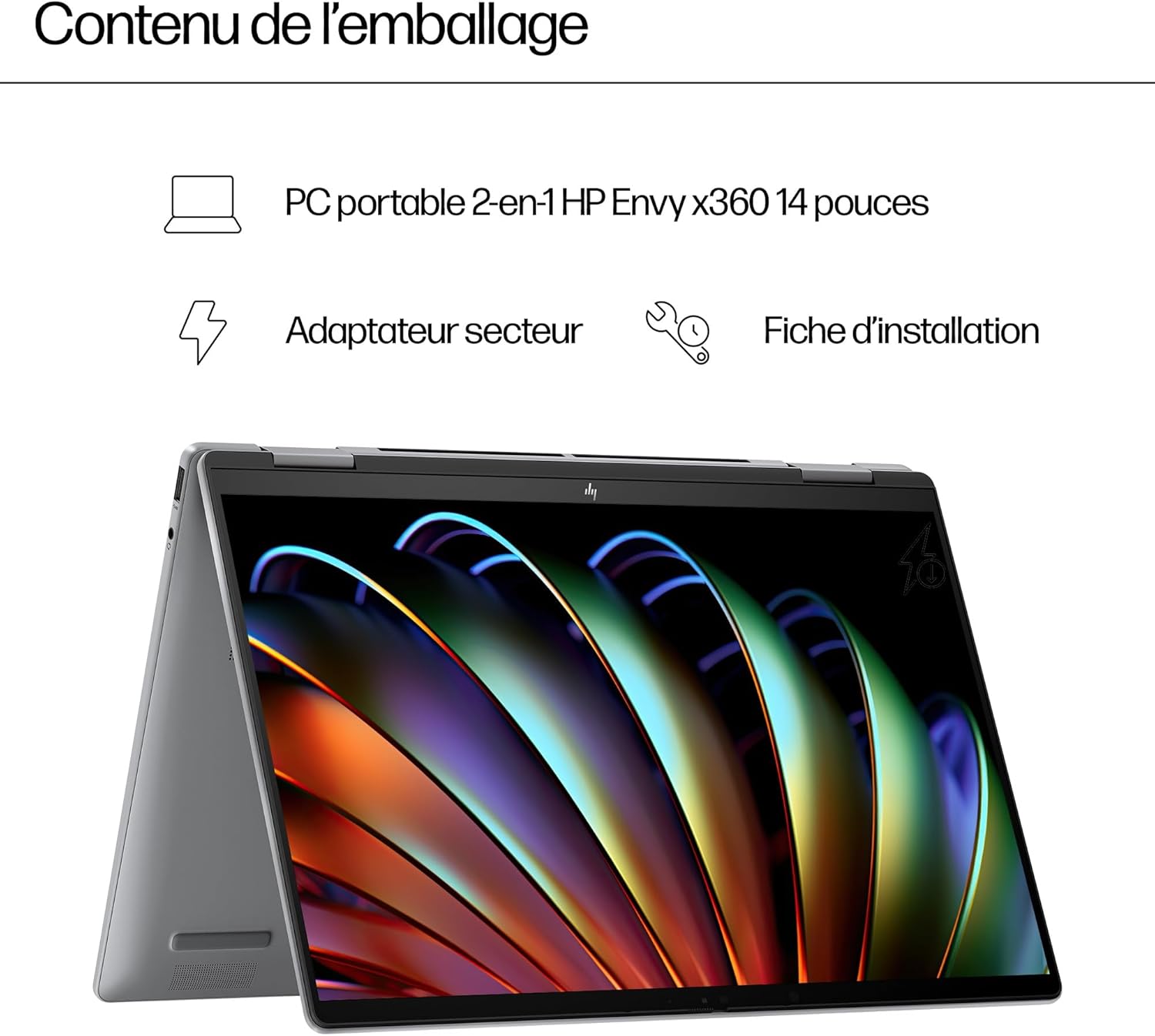 Fiche Technique HP 14-fa000sf Convertible Laptop 14 Inch 2.8K OLED 120 Hz Touch, Laptop (AMD Ryzen 7 8840HS, 16GB RAM, 512GB SSD, AMD Radeon Graphics, Windows 11), Silver Laptop, AZERTY Keyboard au Maroc