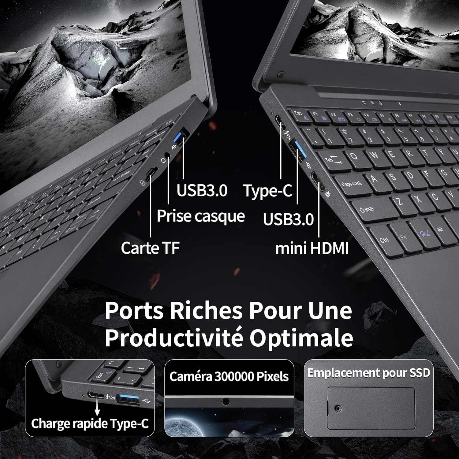 Fiche Technique LONGEVINCE Celeron N4020, 1280 x 800 Mini Laptop, 10.1 Inch Laptop, 8G Memory, BT5.0, Type-C, USB3.0 x 2, Mini HDMI, TF Card, 0.75 kg (Grey, 8G + 256GB SSD) au Maroc