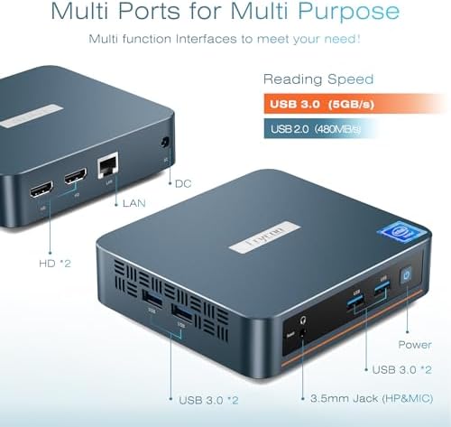 【𝑫𝒖𝒂𝒍 𝑯𝑫 𝑷𝒐𝒓𝒕𝒔, 𝑫𝒖𝒂𝒍 4𝑲@60𝑯𝒛 𝑺𝒄𝒓𝒆𝒆𝒏 𝑫𝒊𝒔𝒑 𝒍𝒂𝒚】—— L’ordinateur de bureau WI-4 Mini est équipé d’une carte graphique Intel UHD, offre des performances graphiques puissantes, prend en charge la lecture vidéo double 4K à 60 Hz, connectez le PC à un projecteur comme cinéma maison, profitez d’une variété de divertissements. Deux ports HD 2.0 vous permettent d’effectuer plusieurs tâches efficacement sur deux écrans 4K à 60 Hz.
