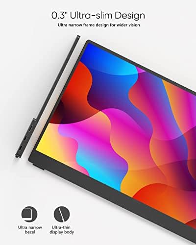 [Durable Quality and Smart Cover] Des matériaux métalliques de haute qualité et durables sont utilisés pour fabriquer ce moniteur portable qui présente une texture métallique fine et une haute résistance. Le moniteur pèse 1,98 lb, l’épaisseur supérieure et inférieure est respectivement de 0,25 pouce et 0,45 pouce. Le moniteur comprend également une couverture intelligente en cuir magnétique qui protège l’ensemble de l’écran et peut également être pliée en support pour servir de support au moniteur.
