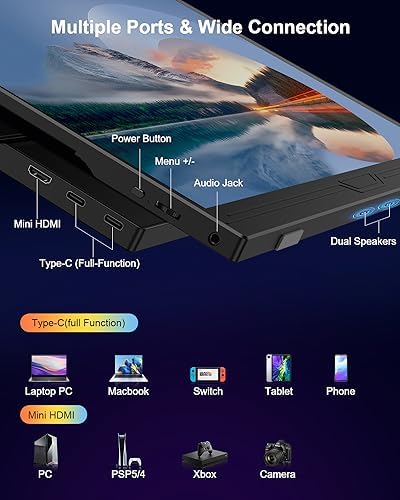 Équipé d’un port USB Type-C et Mini HDMI, plus facile à utiliser comme moniteur externe pour votre Switch/ PS4/ PS5/ Xbox etc.