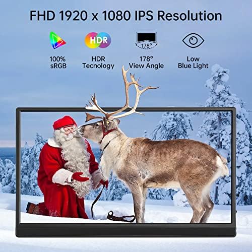 Voici le prix pour acheter Moniteur portable Hamtysan 15,6″ pour ordinateur portable 1920 × 1080 Full HD USB C HDMI Deuxième moniteur externe pour ordinateur portable PC téléphone PS4/5 Xbox Switch, haut-parleur intégré inclus Smart Cover et protecteur d’écran