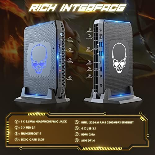 [A Small Gaming PC with Feature-Rich Ports] 2 ports Thunderbolt 4, 6 ports USB 3.1, 1 port HDMI 2.0a, 1 port Mini DP1.4, 1 port Ethernet Intel i225-LM RJ45 2500 Mbps, 2 prises casque/micro 3,5 mm, 1 x SDXC Fente pour carte