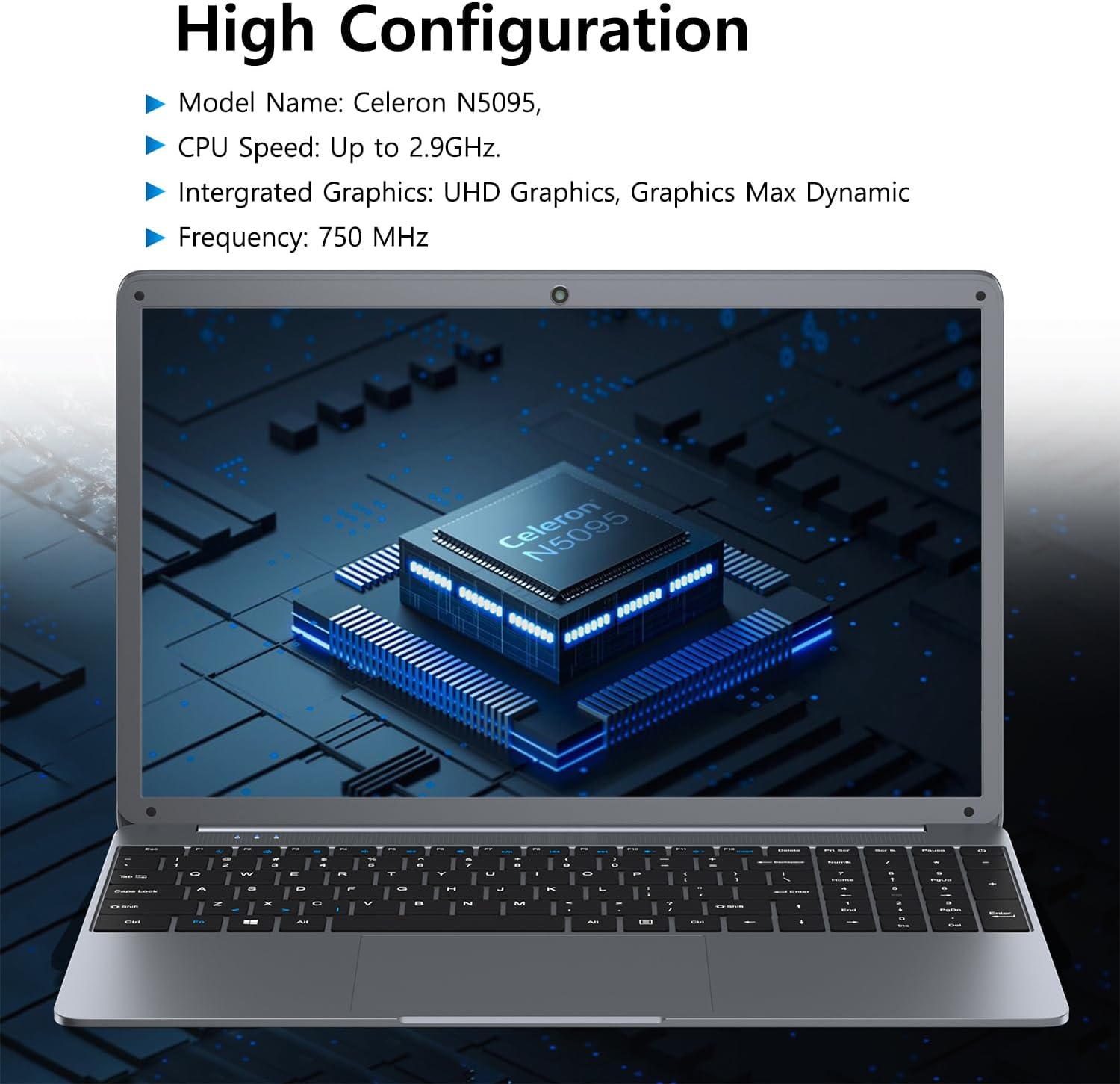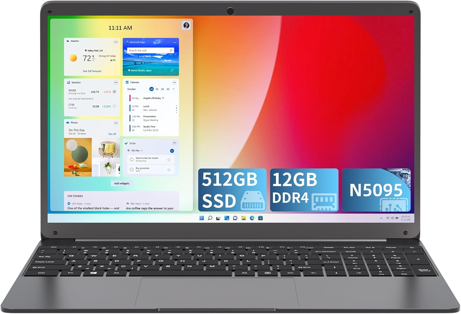 Avis sur SGIN Ordinateur Portable 12Go DDR4 512Go SSD, 15,6 Pouces PC Portable avec Quad-Core N5095 Processeur, 1920 * 1080 IPS FHD Écran, 2.4/5G WiFi, BT5.0, USB3.2 * 2, Extension de 180°, 53.2WH Batteries