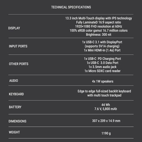 Fiche Technique Station d’accueil à écran tactile de 13,3 pouces pour Samsung Dex. Fonctionne comme moniteur portable filaire ou sans fil. Compatible avec les ordinateurs portables Steam Deck, Nintendo Switch, Windows, Mac et Chrome