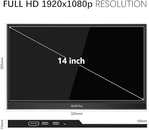 Fiche Technique Wstirhy Écran tactile portable FHD 14″ avec écran tactile IPS HDR 1920 x 1080 pour soins oculaires, moniteur de voyage, moniteur USB de type C, double haut-parleur HDMI Type-C VESA pour ordinateur portable