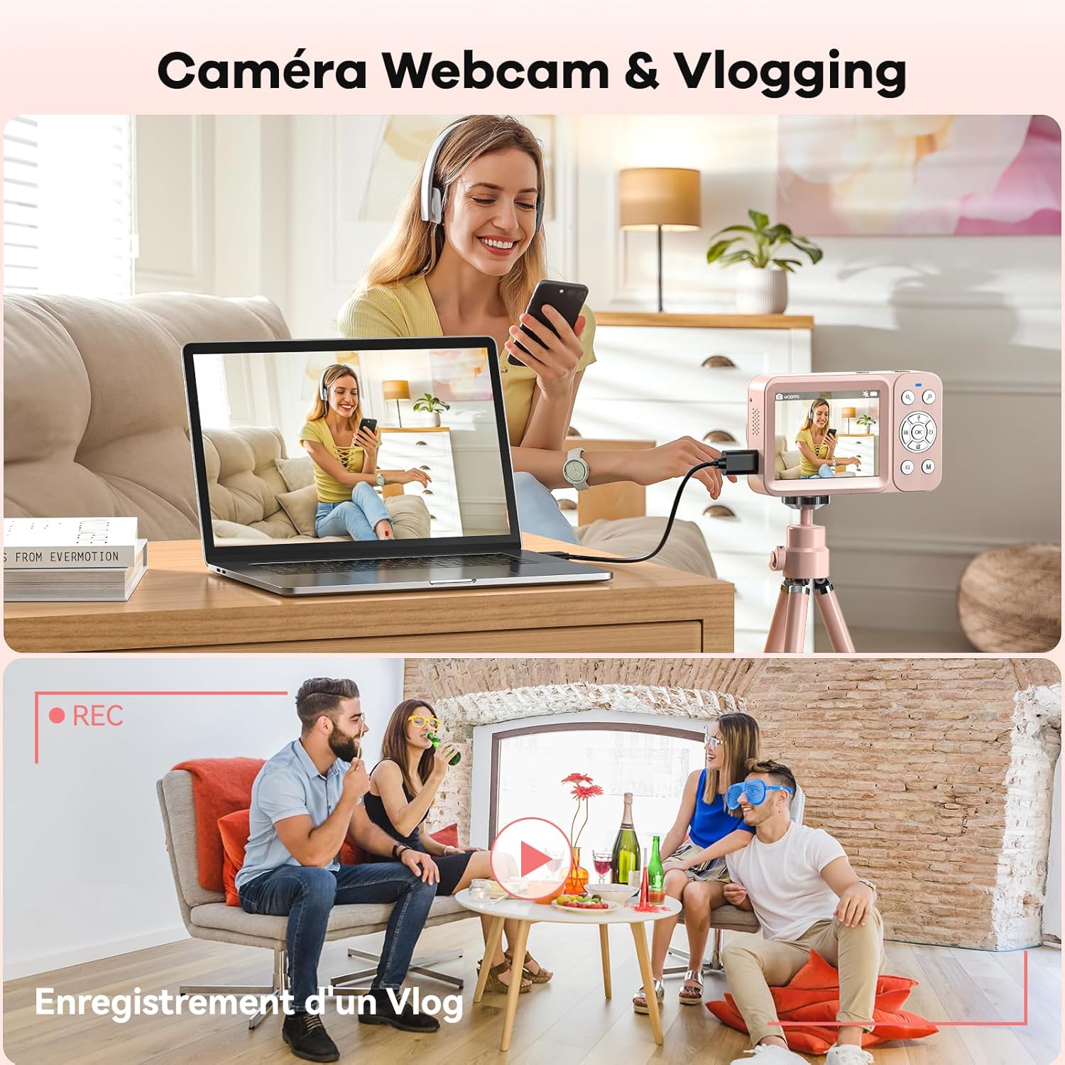 Le Prix DEATTI Appareil Photo Numérique 4K, FHD 64MP Appareil Photo Compact avec Double Écran, 18X Digital Camera Vlog pour Les Adolescents, Enfants, Les Adultes et Les Débutants, 64G Cart SD, Rose au Maroc