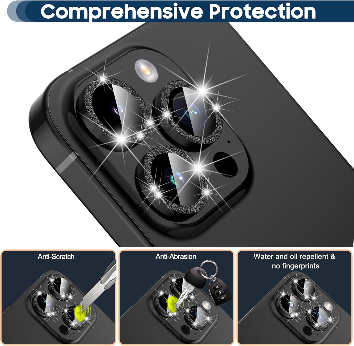 ✨ Conception Décorative de Poudre Flash: le film d’objectif protection appareil photo pour iPhone 15 Pro/15 Pro Max est conçu avec un anneau de poudre Flash, combiné avec une plaque métallique durable et un alliage d’aluminium de haute qualité, brillant au soleil, accrocheur, flatteur, protecteur de lentille de différentes couleurs pour répondre à vos besoins;