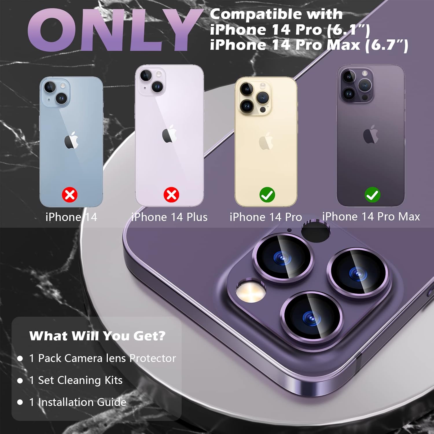 【Compatibilité】imluckies protecteur de caméra est seulement pour iPhone 14 Pro 6.1inch/ iPhone 14 Pro Max 6.7inch, compatible avec la plupart des étuis de téléphone. S’il vous plaît vérifier votre modèle d’appareil soigneusement avant l’achat, et n’hésitez pas à nous contacter si vous avez des problèmes de produit.