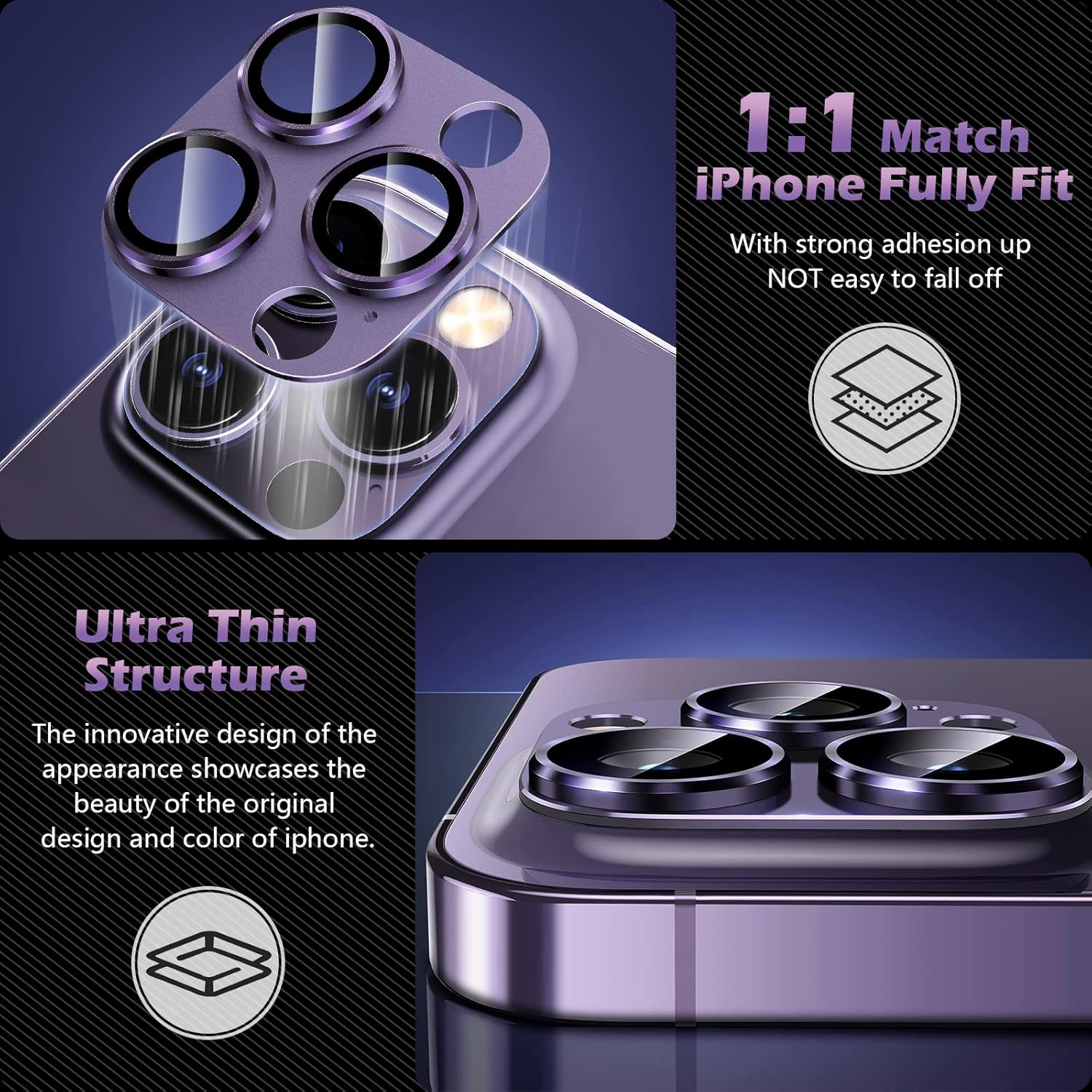【Installation facile】Enhanced auto-absorb technology, il suffit de teal off le film plastique noir de la protection de la lentille et de l’aligner avec la lentille, appuyez pendant trois secondes pour un ajustement parfait. Installation sans bulle, pour 14 Pro / 14 Pro Max.