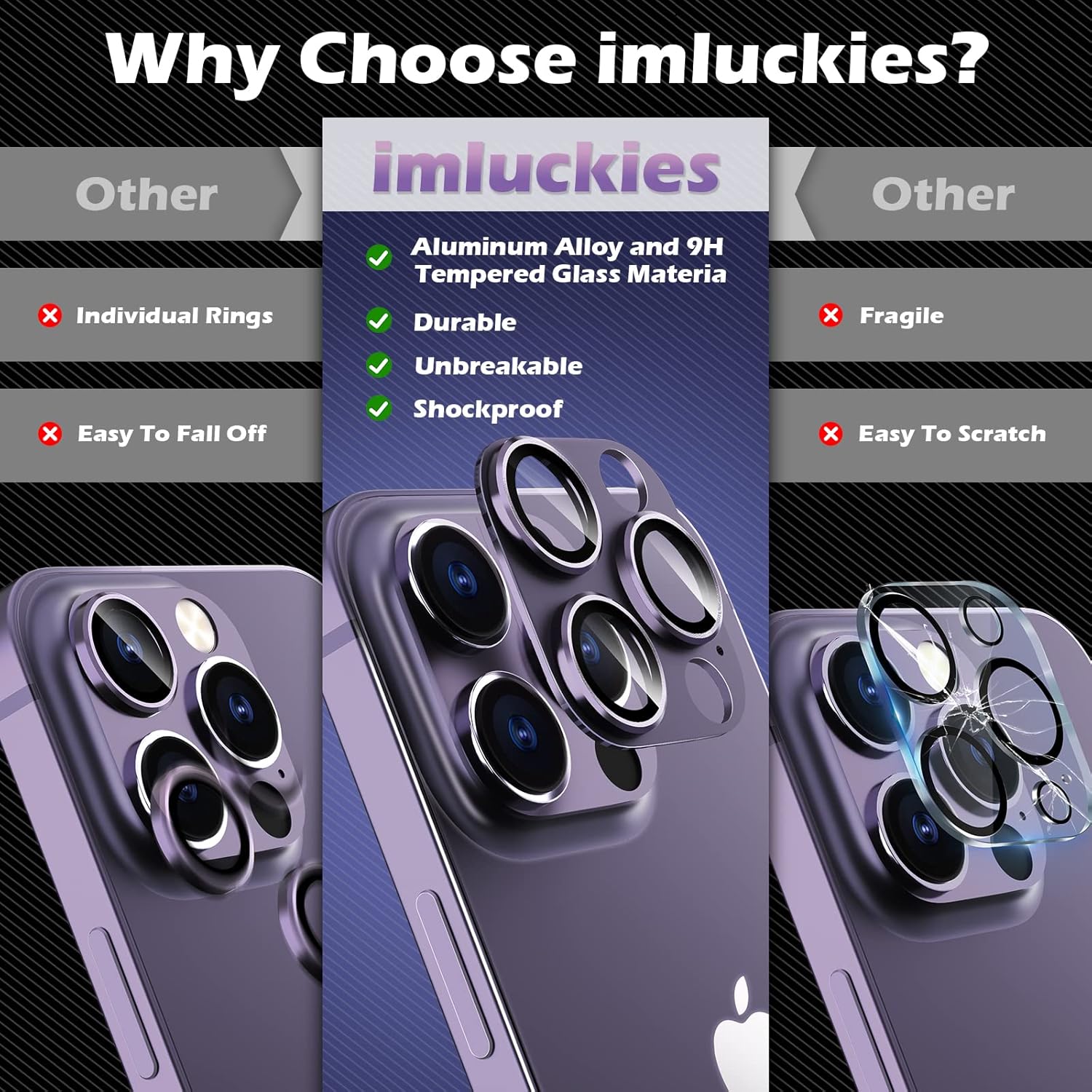 Avis sur imluckies Caméra Arrière Protecteur pour iPhone 14 Pro/iPhone 14 Pro Max, [Alliage Aluminium Intégrer] Verre Trempé 9H Métal Protection Objectif Caméra [Antichoc] [Anti-Rayures], Violet