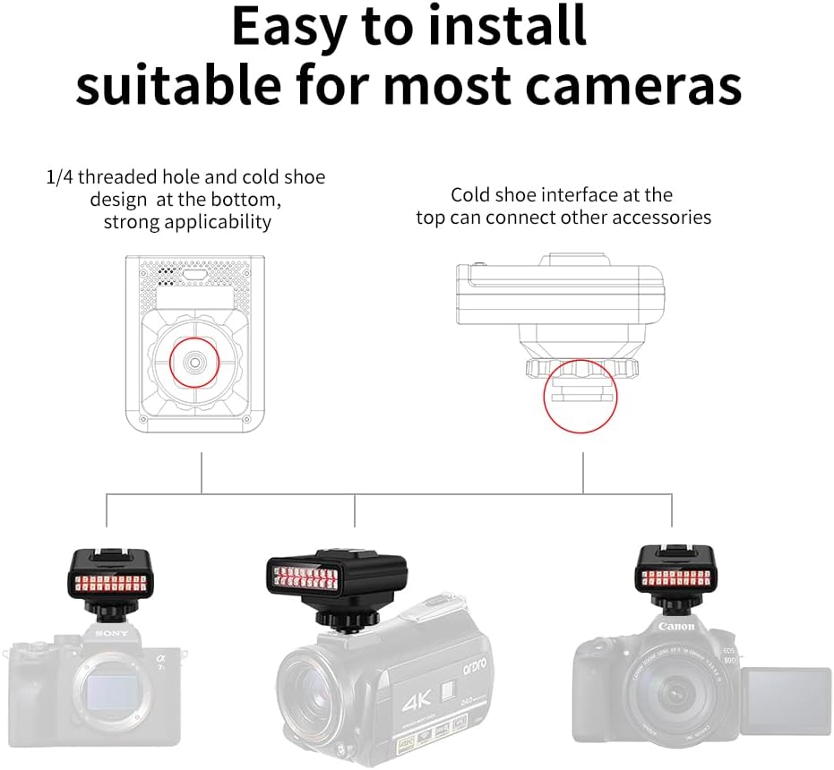 Facile à installer, avec une conception de trou fileté 1/4 en bas et une interface de chaussure froide, facile à installer et une forte applicabilité, et une interface de chaussure froide en haut, vous pouvez connecter d’autres accessoires.