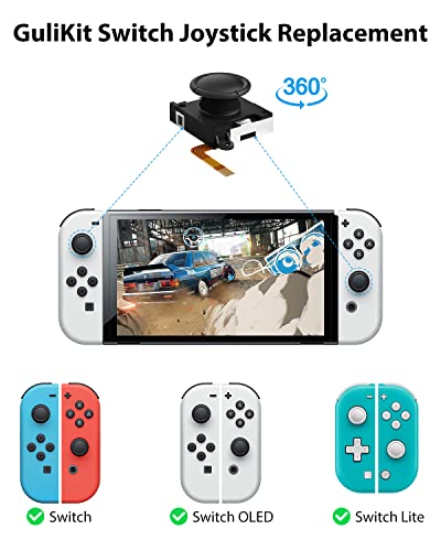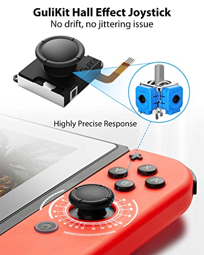 Le Prix Comme [No Drift] GuliKit Switch Joycon Joystick de remplacement, contrôleur de joystick de commutateur à effet Hall pour Switch/Switch OLED/Switch Lite, 2 dragonnes, capuchons de poignée de pouce et kit de réparation (2 paires)