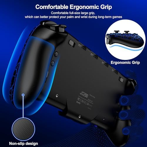 🎮Prise en main pleine grandeur et jeu pendant le chargement : L’avantage majeur de cette manette Switch sans fil réside dans son confort exceptionnel grâce à sa prise en main pleine grandeur. La conception ergonomique de la poignée garantit que vos paumes ne se fatigueront pas même après de longues heures de jeu. De plus, le joystick et les boutons sont parfaitement positionnés pour un accès facile et un gameplay optimal. Pour plus de commodité, nous fournissons également un câble de chargement en « Y », permettant le chargement simultané de la manette et de la console.
