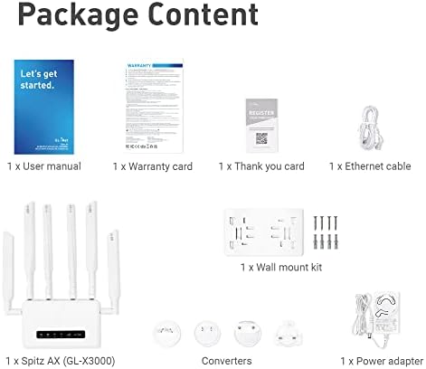 Avis sur GL.iNet GL-X3000 (Spitz AX) Routeur de passerelle cellulaire 5G NR AX3000, Wi-Fi 6, multi-WAN et antennes détachables, double SIM, OpenVPN et WireGuard, OpenWrt, MU-MIMO, RV, T-Mobile et Appareil IoT AT&T certifié