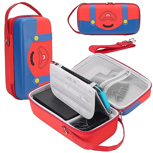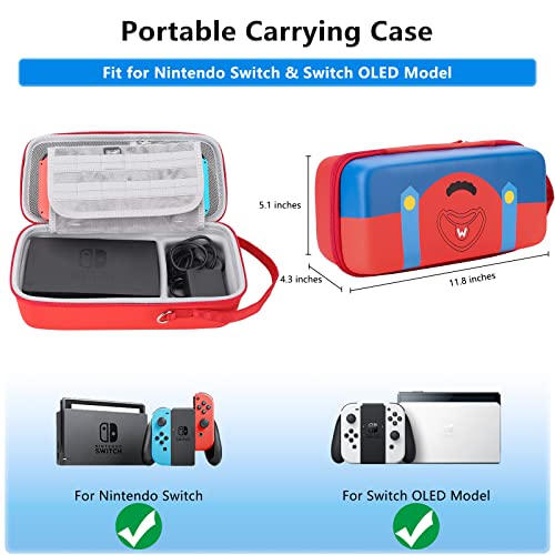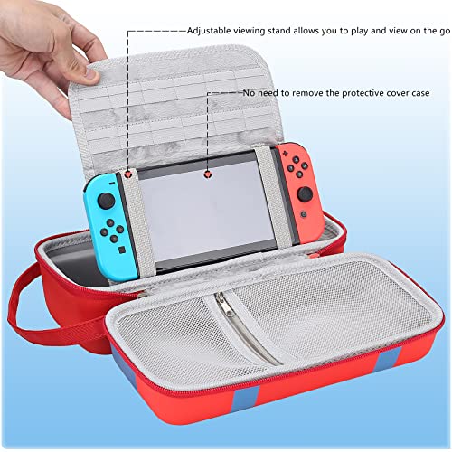 Le Prix Mario Carry Case pour Nintendo Switch/Switch OLED – Support intégré compatible avec l’adaptateur secteur Switch, Switch Dock ou Pro Controller, étui de voyage portable pour Switch Console Pro Controller Accessoires
