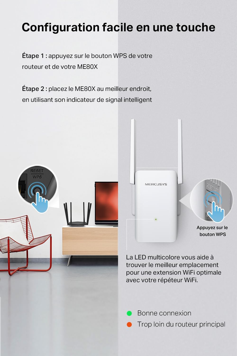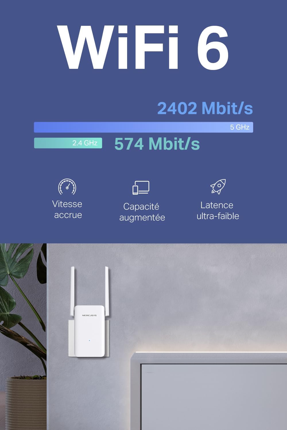 Avis sur MERCUSYS ME80X TP-Link WiFi 6 Repeater, AX3000 Mbps WiFi Amplifier, Gigabit Ethernet Port, Covers up to 150 m², Powerful WiFi Repeater, Compatible with Internet Boxes