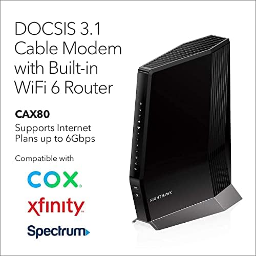 Avis sur Modem câble NETGEAR Nighthawk avec routeur WiFi 6 intégré (CAX80) – Compatible avec tous les principaux fournisseurs | Forfaits de câble jusqu’à 6 Gbit/s | AX6000 Wi-Fi 6 vitesses | DOCSIS 3.1 (renouvelé)