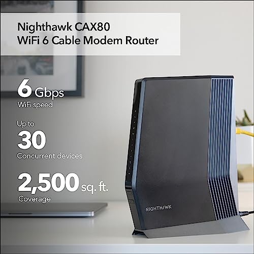 Avis sur Modem câble NETGEAR Nighthawk avec routeur WiFi 6 intégré (CAX80) – Compatible avec tous les principaux fournisseurs, y compris. Xfinity, Spectre, Cox | Jusqu’à 6 Gbps de vitesse AX6000 DOCSIS 3.1