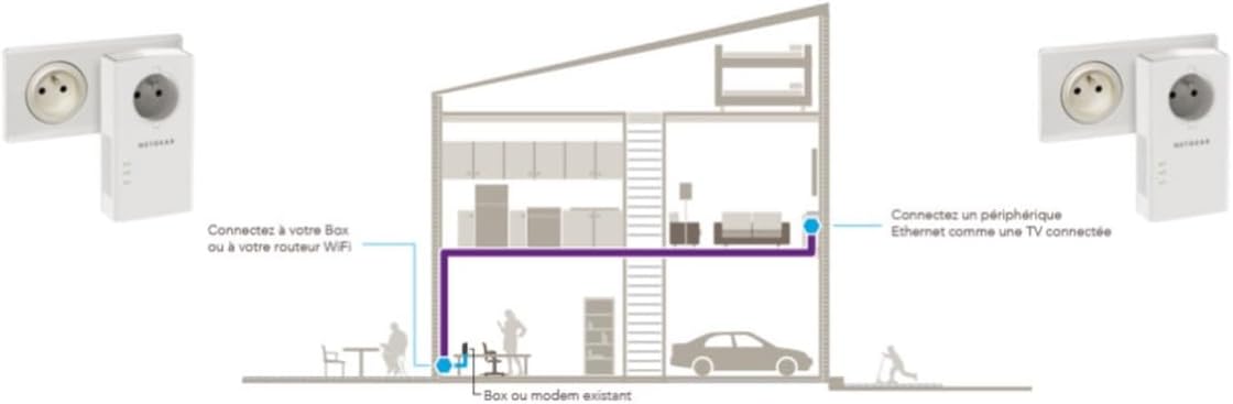 Le Prix NETGEAR PLP1000, CPL 1000 mbps avec Port Ethernet, Prise CPL Fibre idéal pour avoir internet partout dans la maison et profiter du Multi-TV, compatible toutes box, fonction détection prise idéale au Maroc