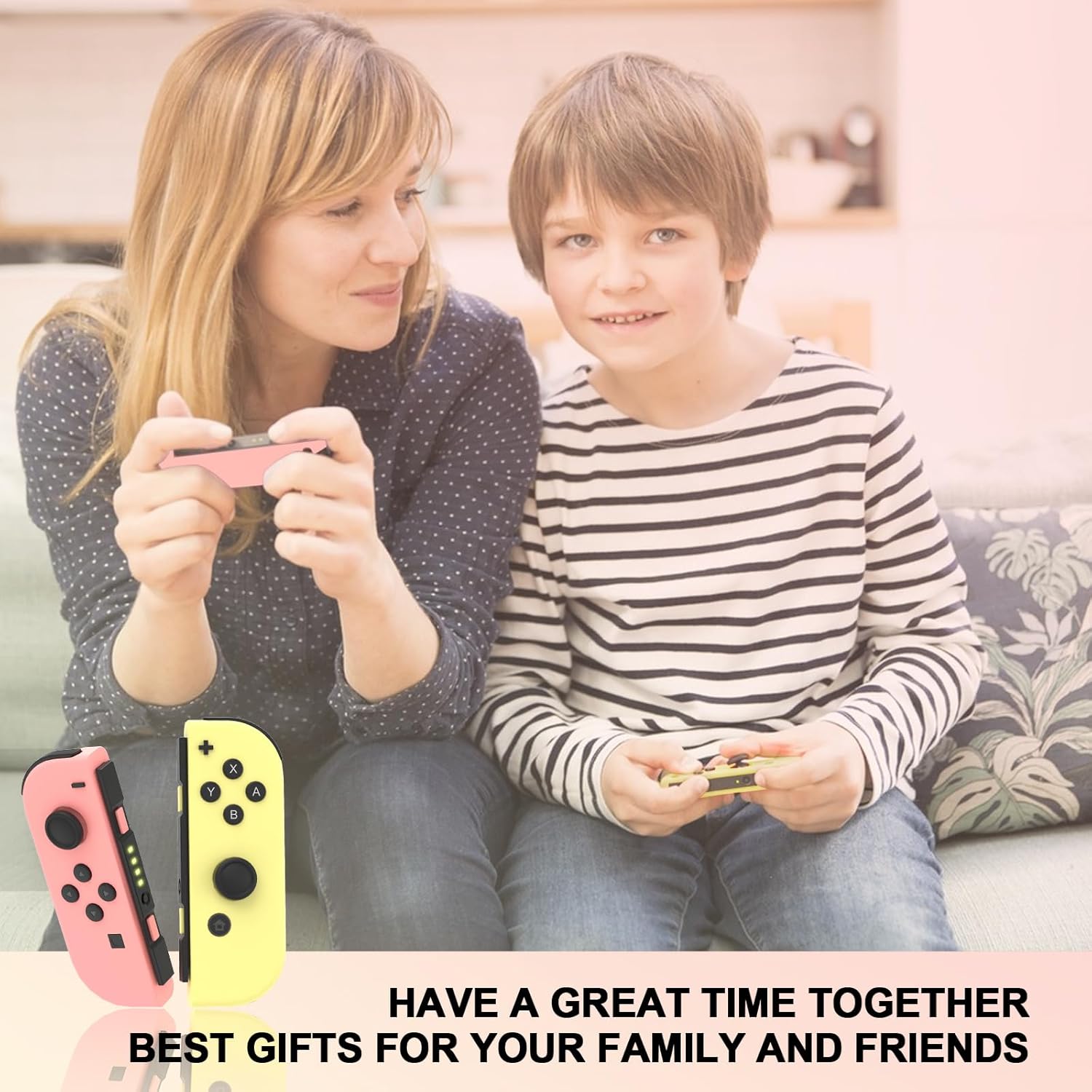Le Prix OUBANG Manette pour Switch Joypad, Joypads améliorés pour Switch Sports Game, Joy-Pad sans fil L/R compatible avec Nintendo Switch, Joy Pads rose/jaune pour manettes Switch avec réveil/capture d’écran (sans NFC)