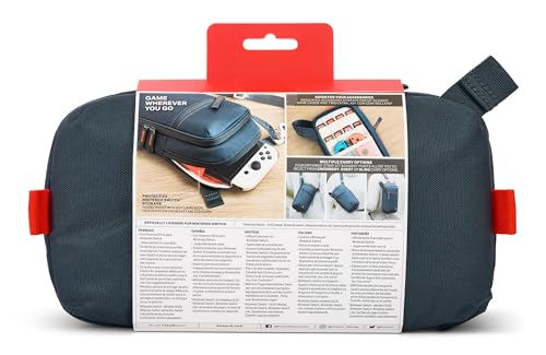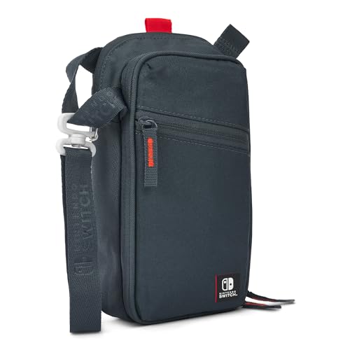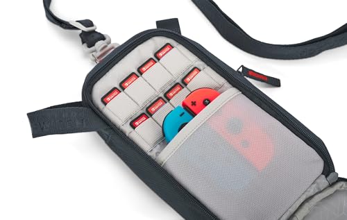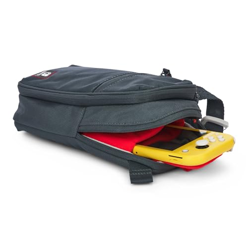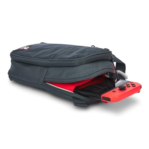 Le sac à bandoulière PowerA sous licence officielle pour Nintendo Switch est idéal pour emporter vos aventures de jeu partout où vous allez. Doté de quatre points de fixation de sangle, ce sac polyvalent peut être utilisé en bandoulière, en bandoulière ou sur la poitrine. La position de transport sécurisée sur la poitrine maintient le sac contre le corps afin que vous n’ayez pas besoin de le retirer pour vous asseoir ou accéder à votre Nintendo Switch. Le compartiment principal est doté d’une poche rembourrée doublée de tricot doux qui le protège de la poussière et des rayures. Le compartiment secondaire s’ouvre à plat pour un accès facile et comporte des emplacements pour jusqu’à 8 cartes de jeu et des sangles pour contenir jusqu’à 2 contrôleurs Joy-Con supplémentaires. Doté d’une poche zippée pour un portefeuille ou un téléphone, le sac bandoulière est tout ce dont vous avez besoin pour partir à l’aventure. *Nintendo Switch – Modèle OLED, Nintendo Switch, Nintendo Switch Lite, cartes de jeu et autres accessoires vendus séparément.