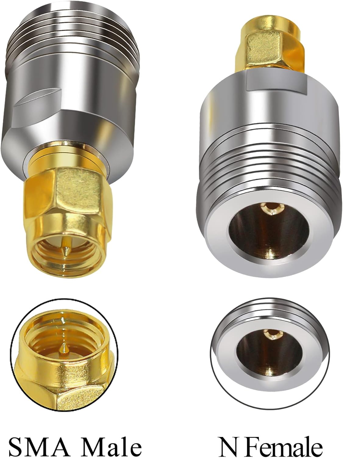 ♫ Contenu de l’emballage : 2 adaptateurs coaxiaux SMA mâle vers N femelle (connecteur 1 : SMA mâle, connecteur 2 : N femelle).