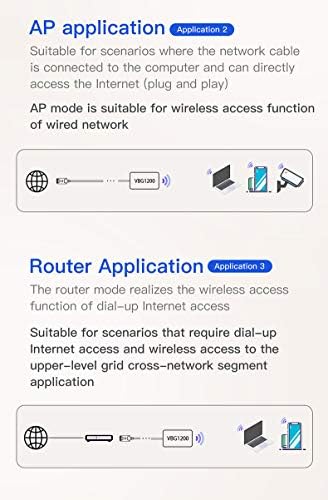 Fiche Technique VONETS AC1200 Mini pont sans fil double bande Ethernet/répéteur WiFi/routeur Ethernet RJ45 vers WiFi avec 4 antennes externes, idéal pour les robots DVR, les appareils réseau PS3 VBG1200
