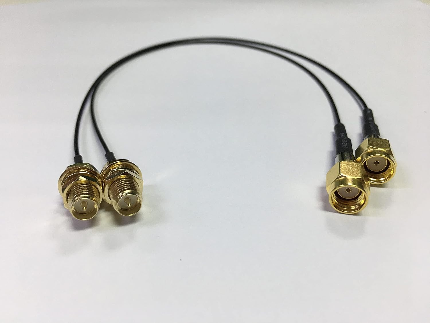 Type de connecteur : prise RP SMA vers prise RP SMA (femelle vers mâle) connecteur 50 ohms à montage sur cloison ; Câble : câble coaxial ; Longueur : 25 cm ;