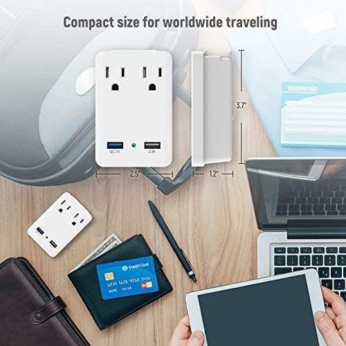 Kit de voyage international : double prise secteur et ports USB avec charge rapide 3.0 (5 V/3 A, 9 V/2 A, 12 V/1,5 A) pour Galaxy S10/S9 S8/S7, Note 5/4, Nexus 6 et HTC se combine avec un port USB intelligent (5 V/2,4 A) pour iPhone, iPad et plus encore.