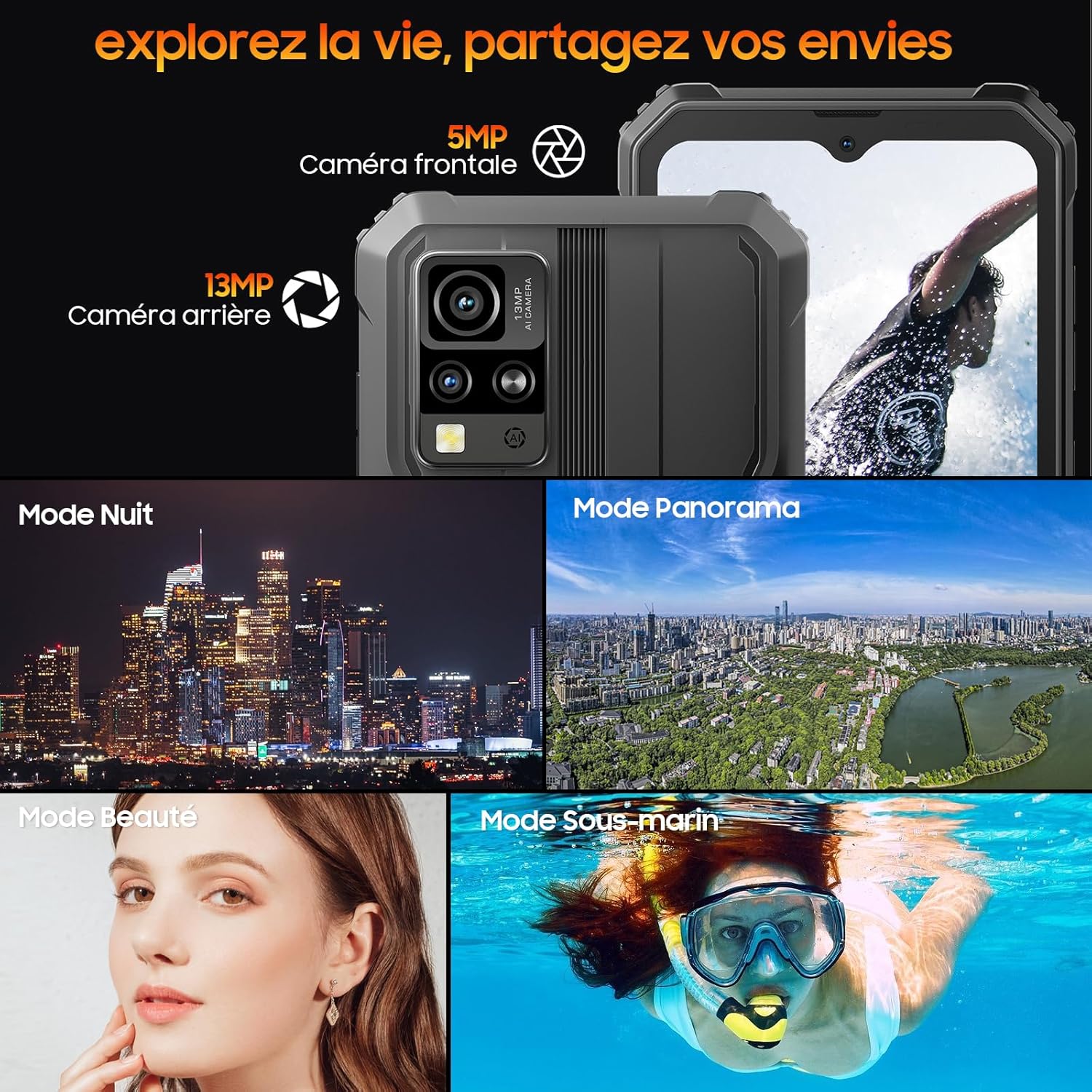 🔥𝟔𝐆𝐨 𝐑𝐀𝐌 (𝟑𝐆𝐨 𝐑𝐀𝐌 + 𝟑𝐆𝐨 𝐕𝐢𝐫𝐭𝐮𝐞𝐥𝐥𝐞) &𝟔𝟒𝐆𝐨 𝐑𝐎𝐌+𝟏𝐓𝐁 𝐞𝐱𝐭𝐞𝐧𝐬𝐢𝐛𝐥𝐞🔥 Réactivité fulgurante, multitâche fluide ! Avec notre telephone portable incassable android doté d’un chipset performant et d’une prévision intelligente de démarrage des applications, profitez d’une expérience utilisateur dynamique. Étendez la mémoire jusqu’à 1To grâce au slot de carte TF, pour avoir toutes vos applications et photos préférées à portée de main! Explorez l’infini avec notre appareil complet en fonctionnalités.